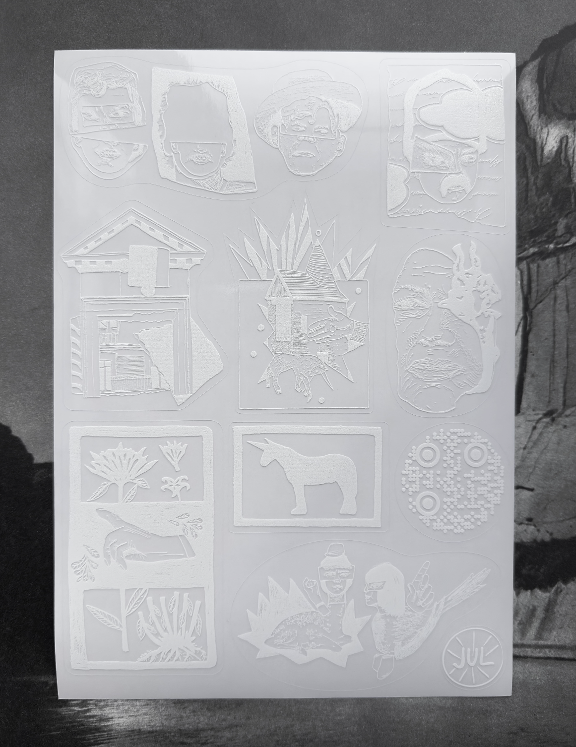 8 стикеров на прозрачной подложке. Размер 14,7 × 21 см (А5)