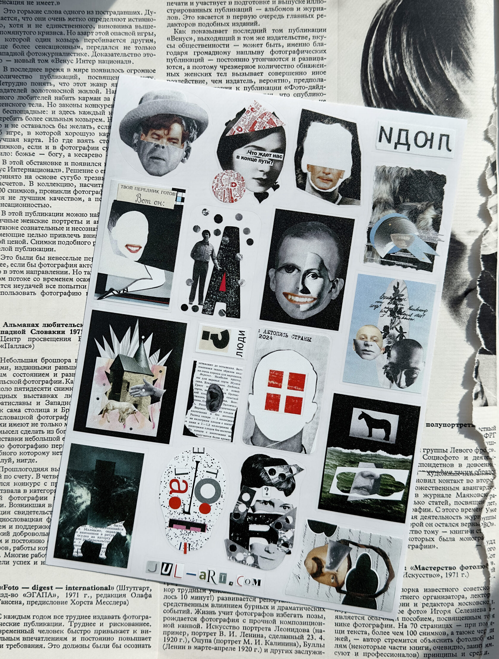 Коллаж, виниловый стикер. Размер 5 × 7,6 см